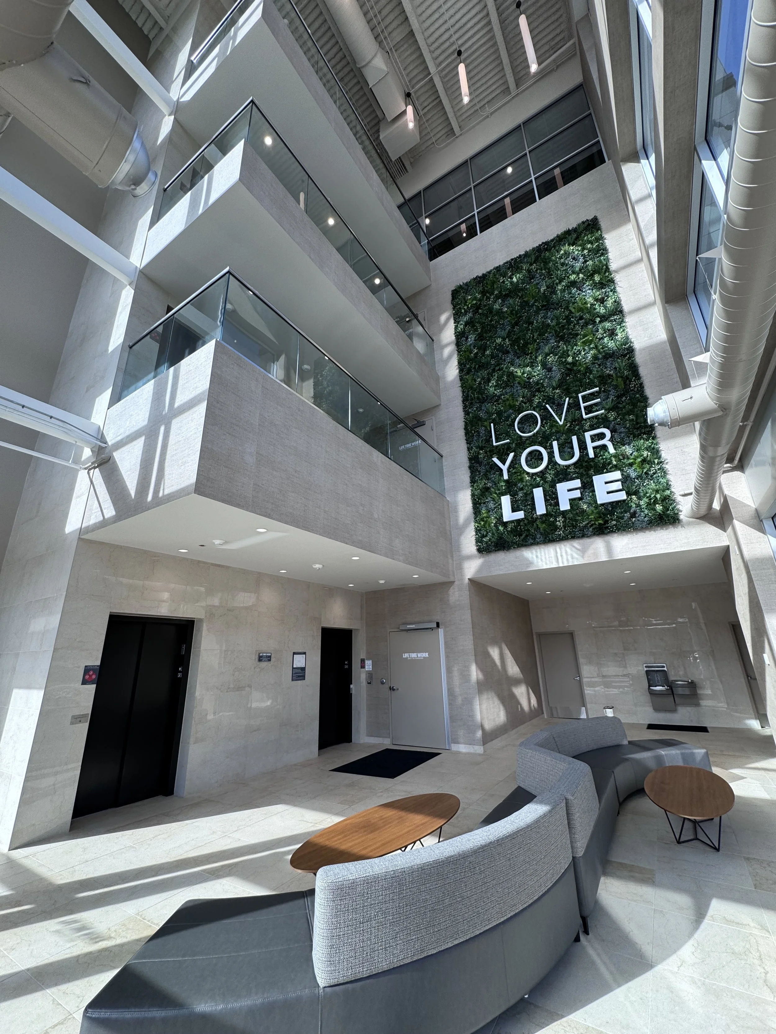 Please check in at the front desk’s iPad station and use Emily Iverson as the host. The system will alert me of your arrival and I will meet you in the lobby (shown in top picture on this page). There are restrooms and a water fountain to your left. If the iPad is not working, please text (503) 715-7237 to update me of your arrival. You may also call the LifeTime Work front desk at (503) 616-9952 for assistance.